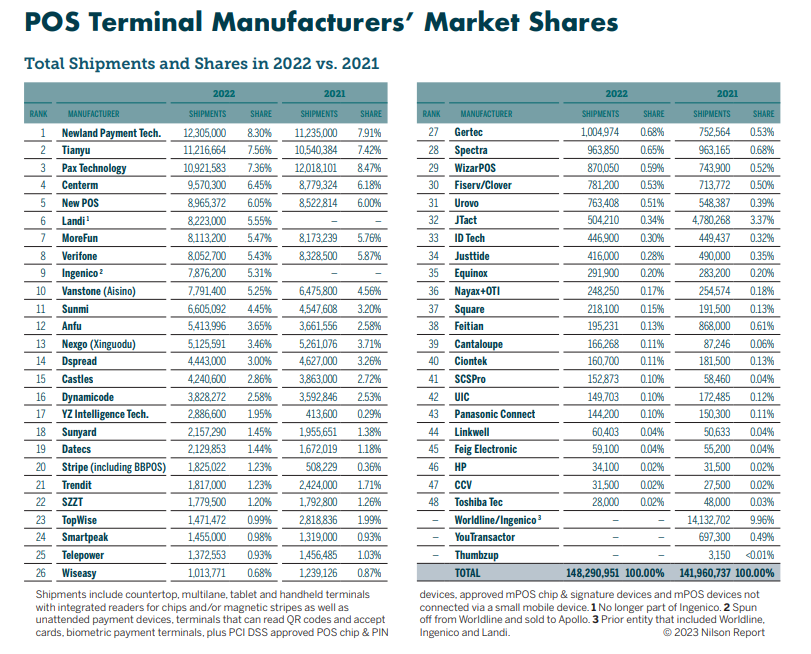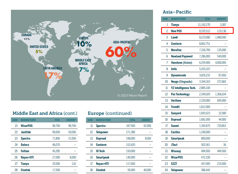 According to the industry authoritative periodical NILSON REPORT, NEW POS ranked fifth in the world in 2022 and second in the Asia-Pacific region for four consecutive years!