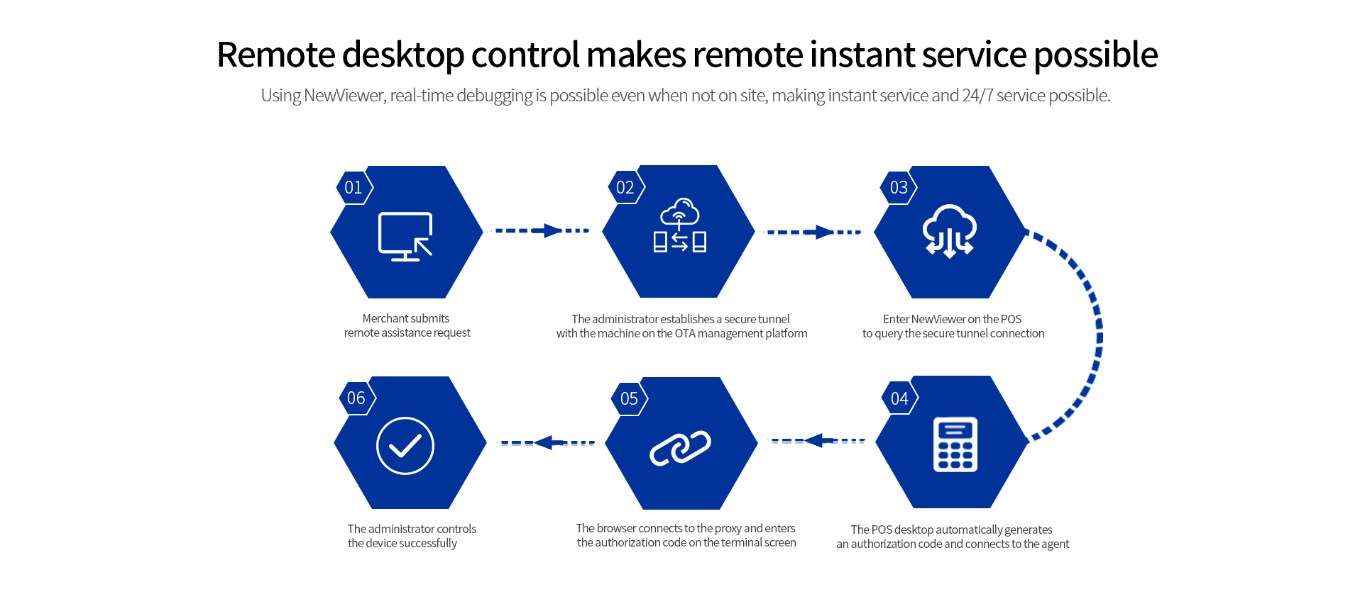 NewViewer is a remote assistance tool. Use NewViewer to remotely access POS terminals through the NewStore cloud platform to help merchants solve their urgent needs.
